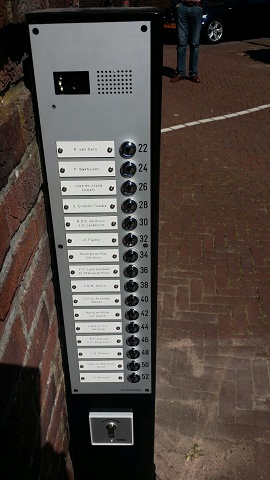 De nieuwe Golmar Tekna monitor in de appartementen is aangesloten op twee camera deurbelpanelen. Eén camera deurbelpaneel bij de toegangspoort en één camera deurbelpaneel bij de entree van het complex.